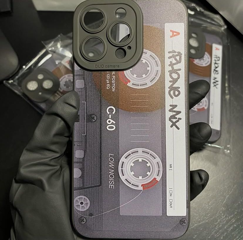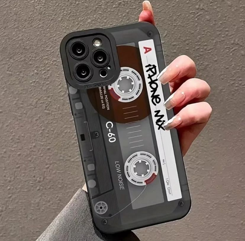 Capa personalizada estampa Fita Cassete. Parte interior aveludada. Para iPhone 14, iPhone 14 Pro Max, iPhone 15, iPhone 15 Pro, iPhone 15 Pro Max.